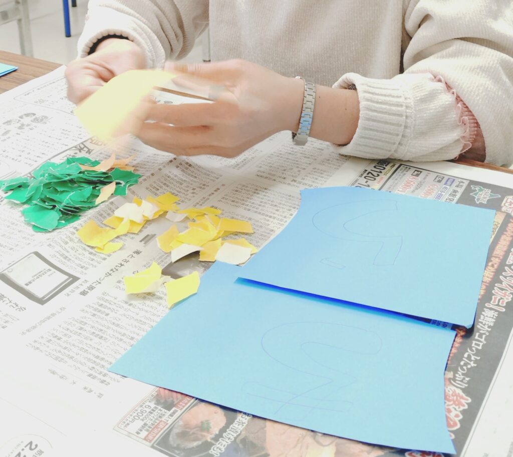 今日は生活訓練プログラムで、参加人数も少なかったので、久々にちぎり絵をしました。